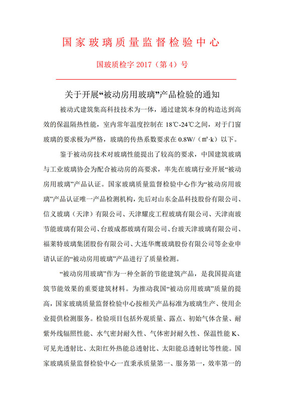 關(guān)于開(kāi)展“被動(dòng)房用玻璃”產(chǎn)品檢驗的通知